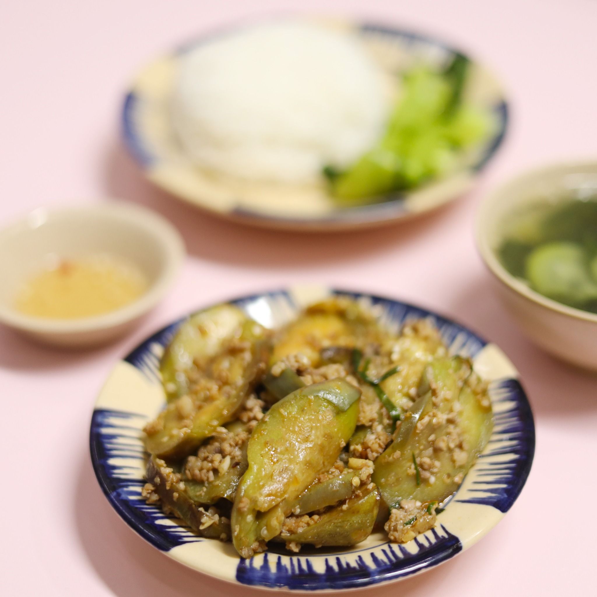 Combo Cơm + Cà Tím Xào Thịt Tóp Mỡ + Rau + Canh